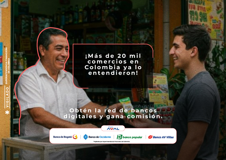 Somos una de las plataformas de servicios mejor consolidadas del país, apoyando a más de 20.000 comercios colombianos como un medio para generar ingresos adicionales y continuar su crecimiento.